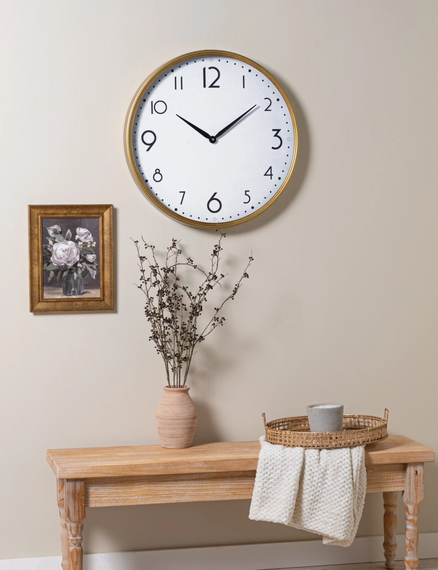 Brio offers a stylishly modern wall clock that’s perfect for bringing a pop of elegance into your decor. The gold frame adds a polished touch to the deco-inspired dial, setting the tone for a chic living space.