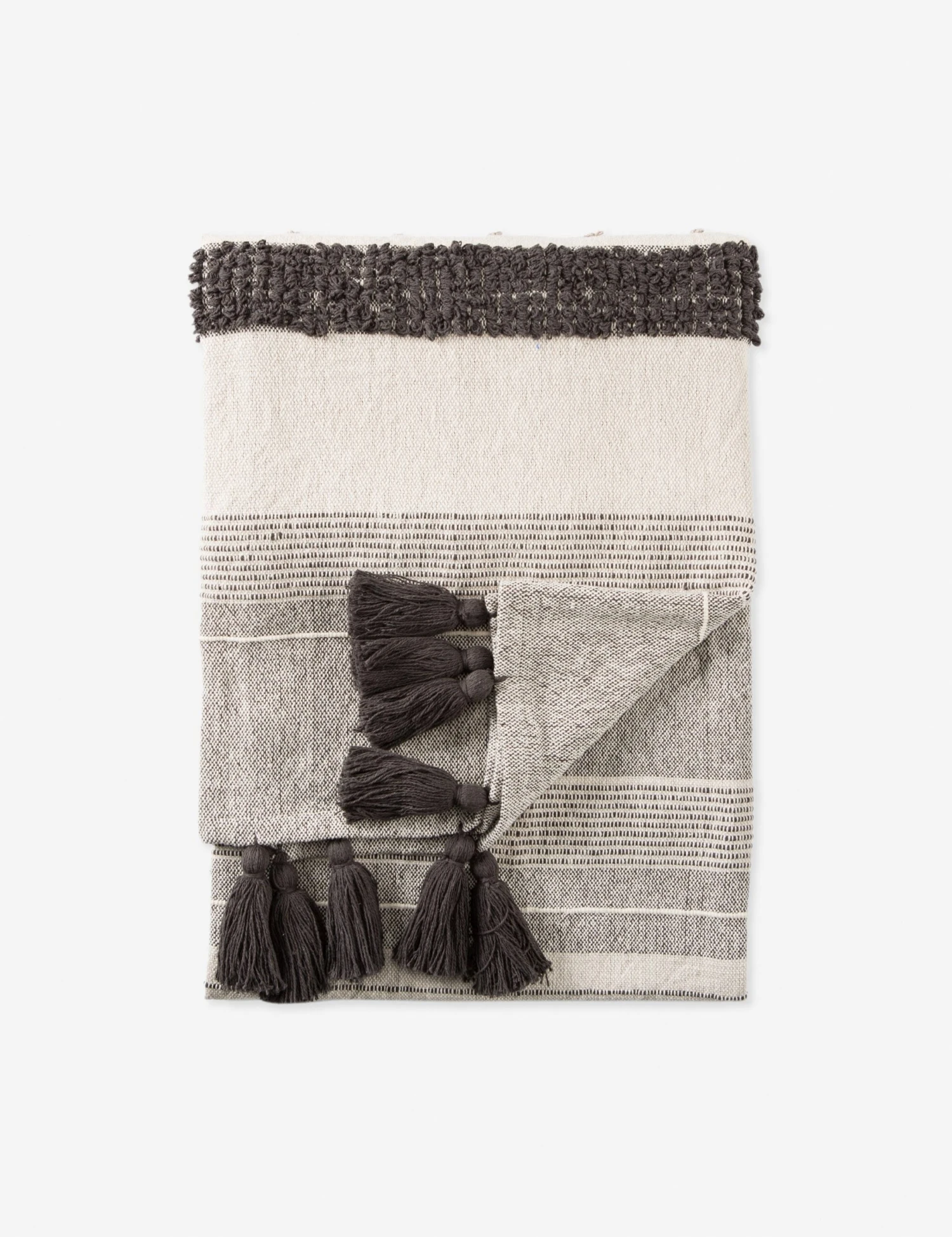 Textures abound in the Huda Throw. With its neutral tones, this cotton blanket offers a versatile accent for year-round comfort you can dress to the season. Tasseled ends add a casual elegance that can easily be styled in your formal sitting room or guest bedroom.