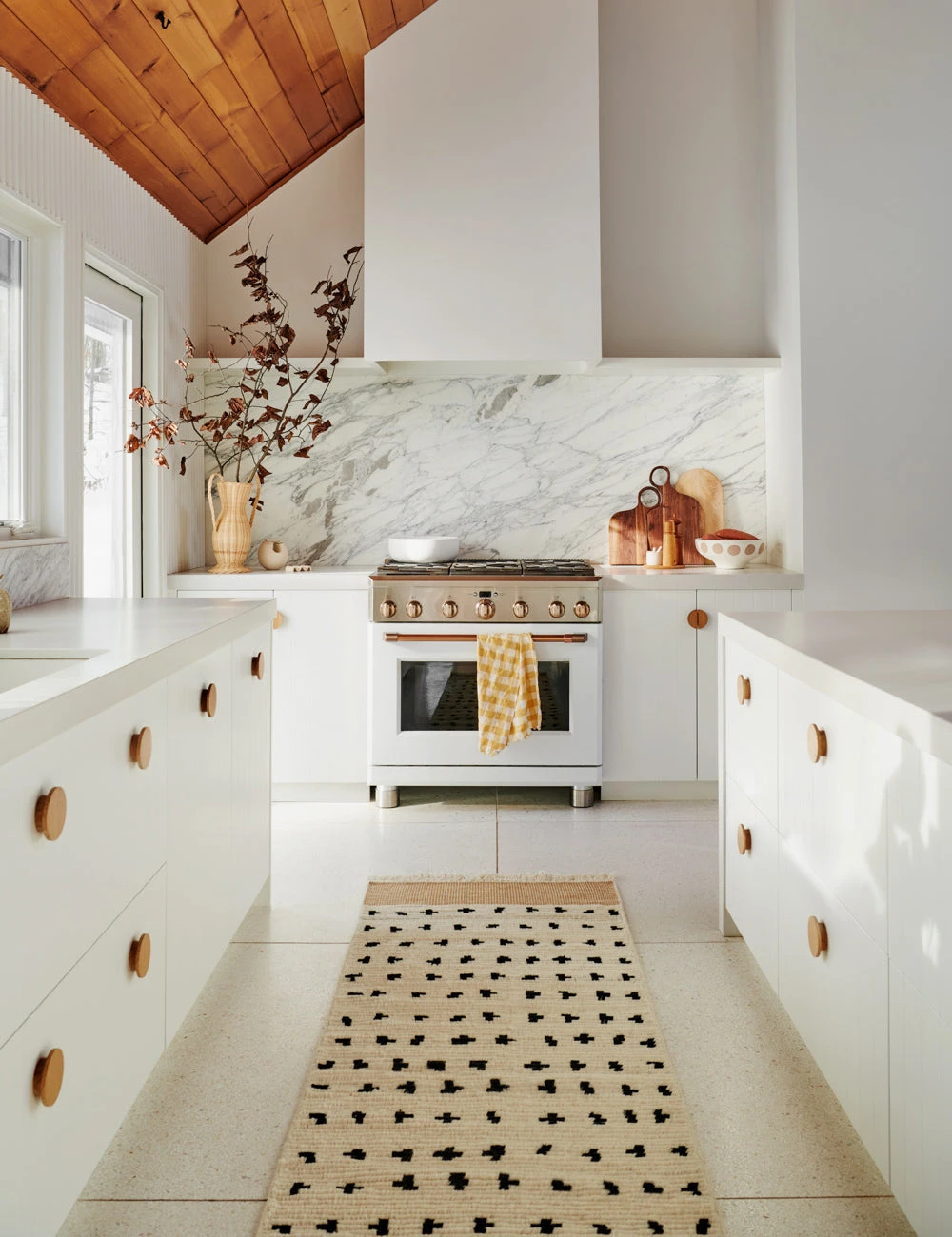 A mixed dot motif and flatwoven border come together in an organic arrangement to create a dynamically textured floor rug. Lay this rug in a dining room or living space for a pop of texture and pattern. This piece is from our exclusive Sarah Sherman Samuel collaboration and features all the trademarks of her warm, edited style.