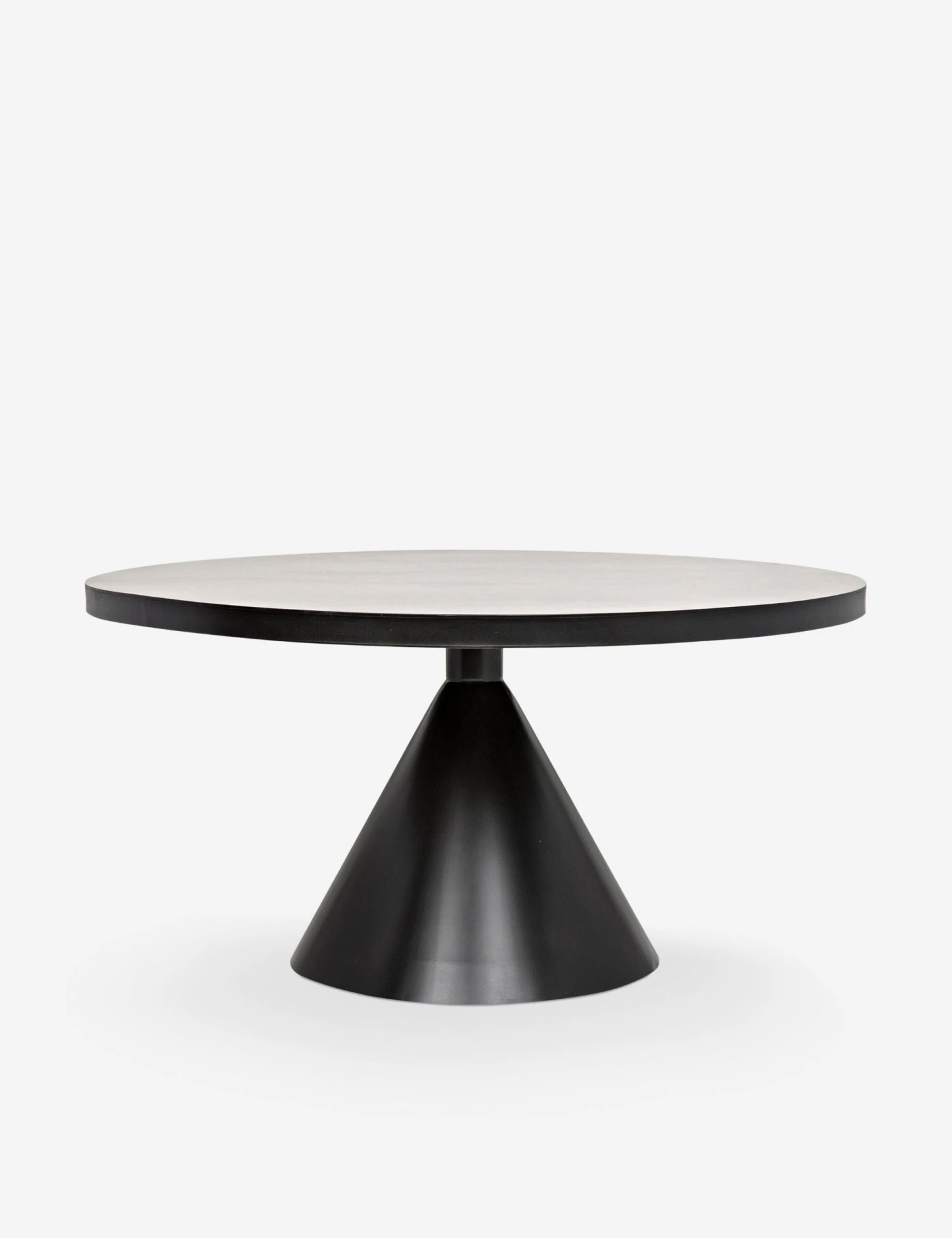 Make a strong, bold statement with this dining table’s dark metal finish and a cone-shaped pedestal. It’s a striking addition to modern spaces.