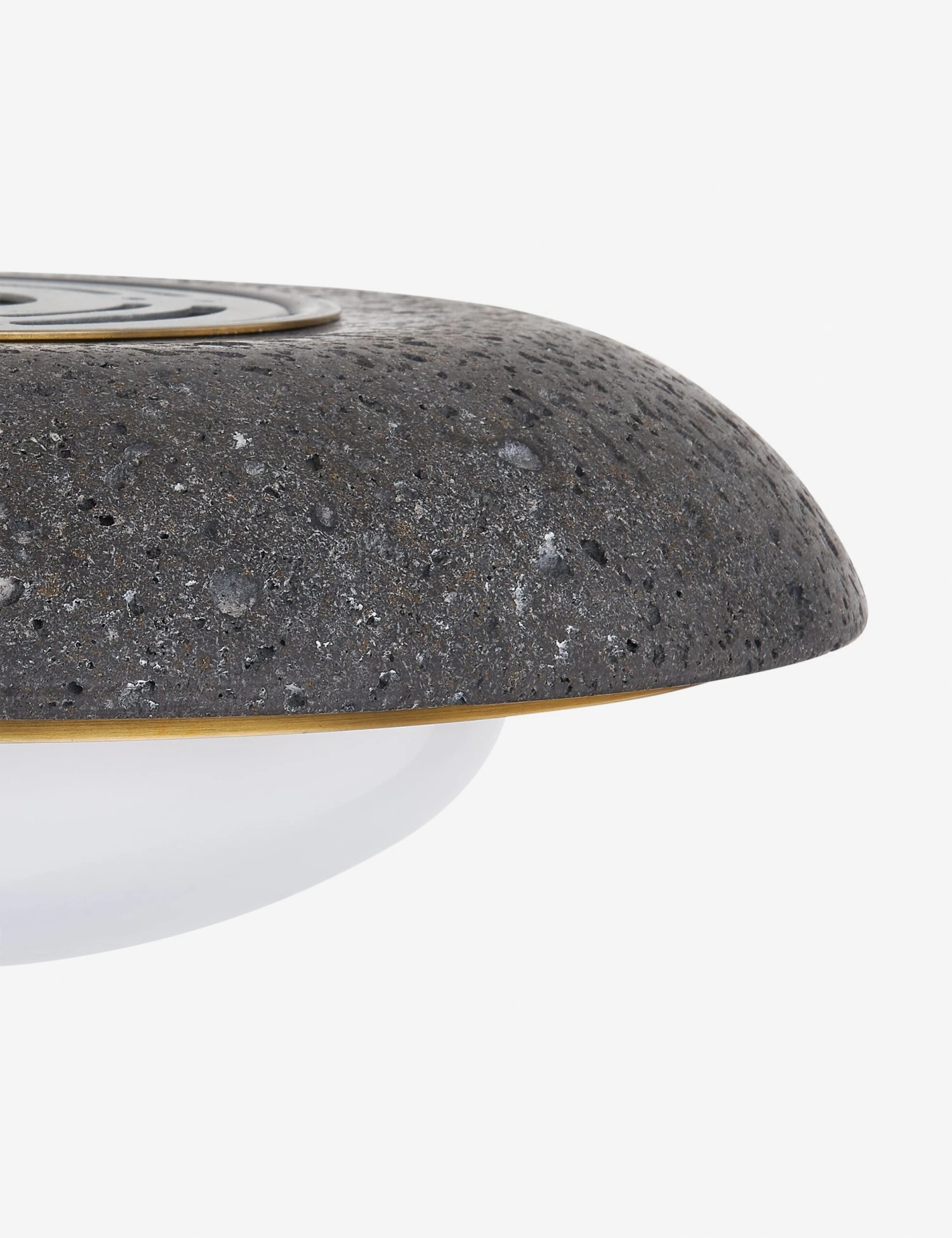 Layer texture and drama into your look with the Miller sconce’s stunning mix of materials. An opal glass globe set in a black lava stone bowl with a patina brass inlay offers a modern sconce light grounded in elemental appeal. The stone’s porous surface creates a striking contrast against the softness and luster of the opal glass and brass.