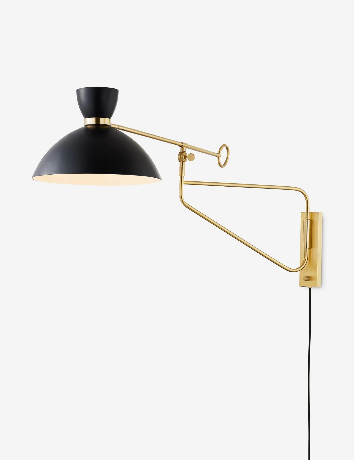 With its sleek frame and hourglass shade, the Patterson sconce brings a chic look to functional lighting. The plug-in design features an adjustable arm that pivots at two points so you can direct light wherever needed. This wall sconce can offer a space-saving bedside light or an elevated touch for a home office or lounge.