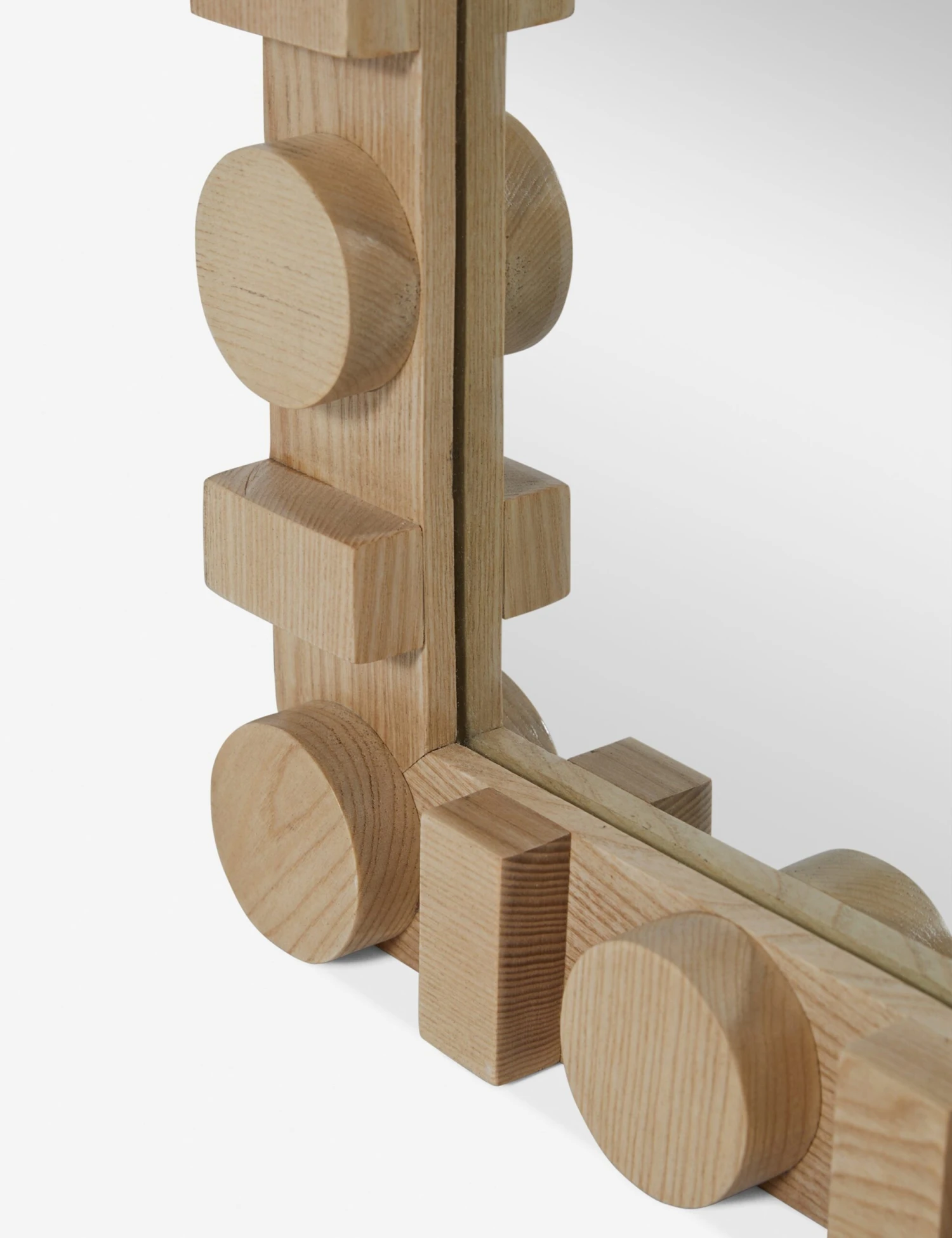 Elemental shapes create dimension with a touch of contrast in the blockwork border of this full length wood-framed mirror. We love the visual depth and natural ash grain this floor mirror offers in a signature blend of chic style and grounded design exclusive to Lulu and Georgia.